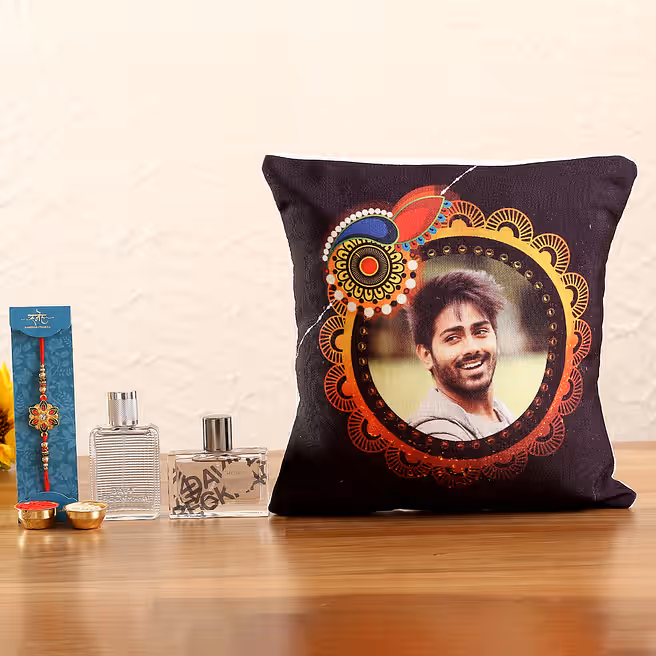 Elegant Rakhi & David Beckham Set With Personalised LED Cushion