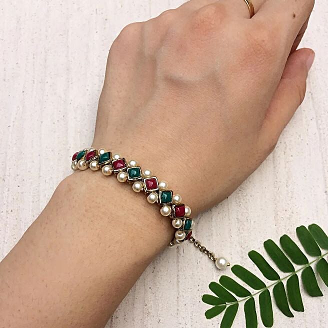 Paya Emerald Marsala Stone And Pearl Bracelet