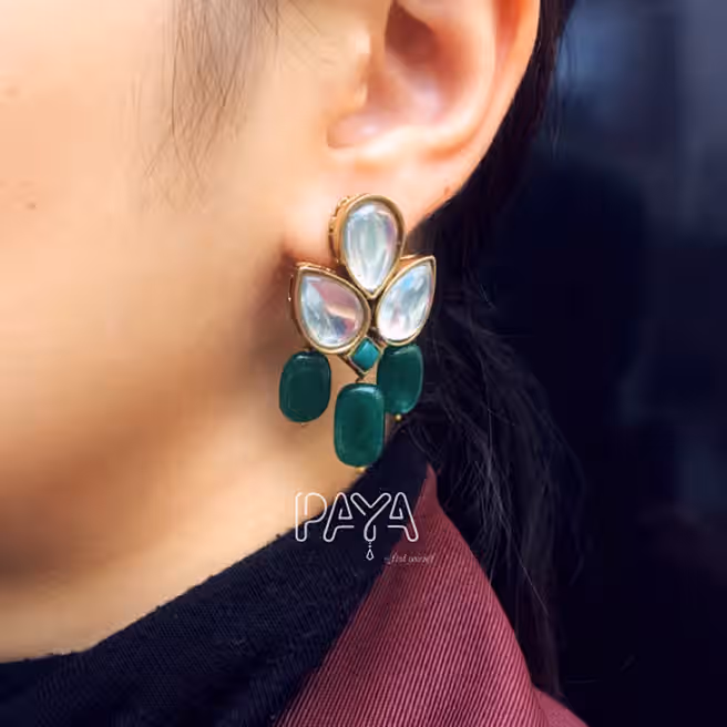 Emerald Stone & Kundan Dangler Earrings
