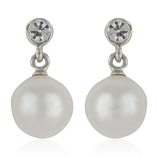 Estele Oxidized Silver Pearl Drop Earrings