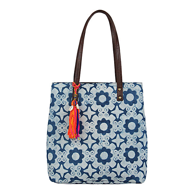 Ethnic Faux Leather Cotton Mini Blu Miss Tote Bag