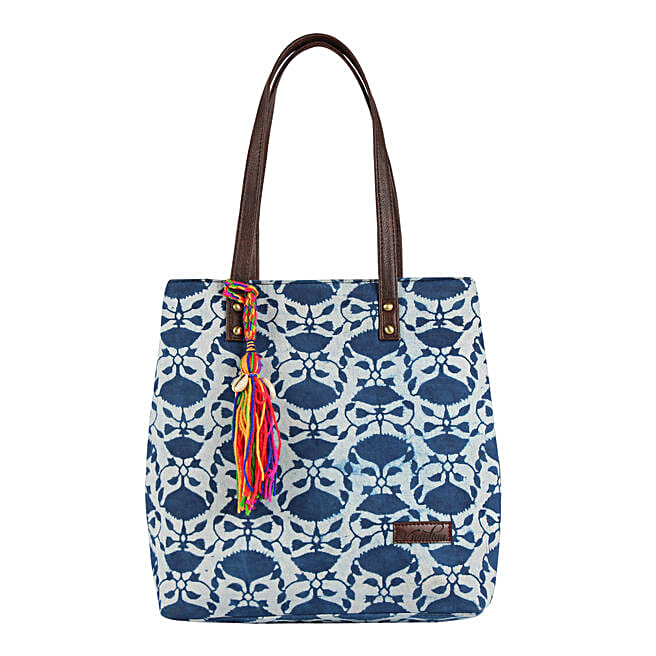 Ethnic Faux Leather Cotton Mini Indigo Tote Bag