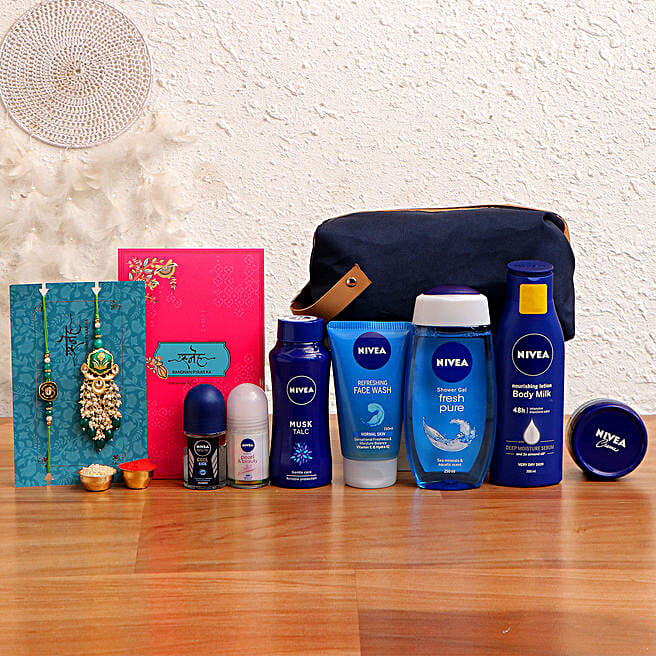 Ethnic Lumba Rakhi Set and Nivea Family Combo
