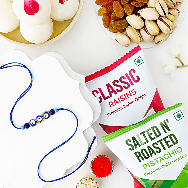 Evil Eye Protection Rakhi & Rasgulla Sumptuous Gift