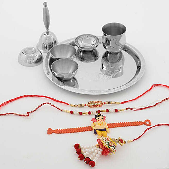 Arttd'inox Designer Thali Set & Rakhi Combo