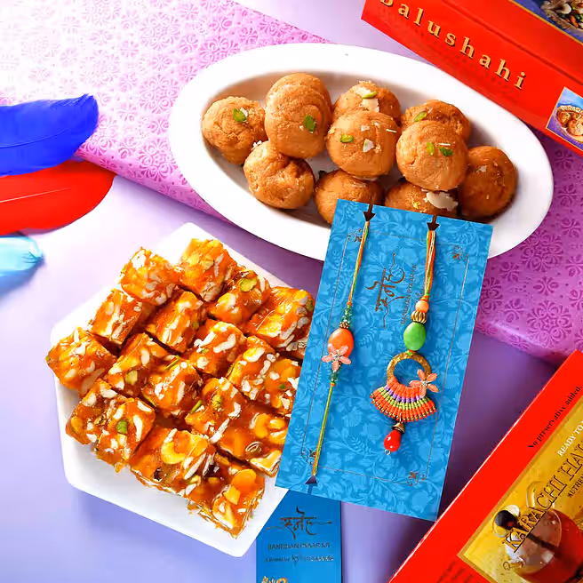 Fancy Bhaiya Bhabhi Rakhi Set & Karachi Halwa Hamper