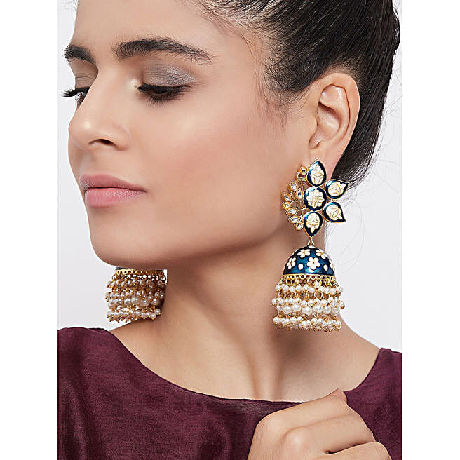Fancy Blue Kundan Meenakari Jhumkas