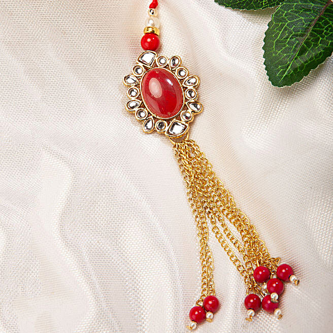 Fancy Red Stone Lumba Rakhi