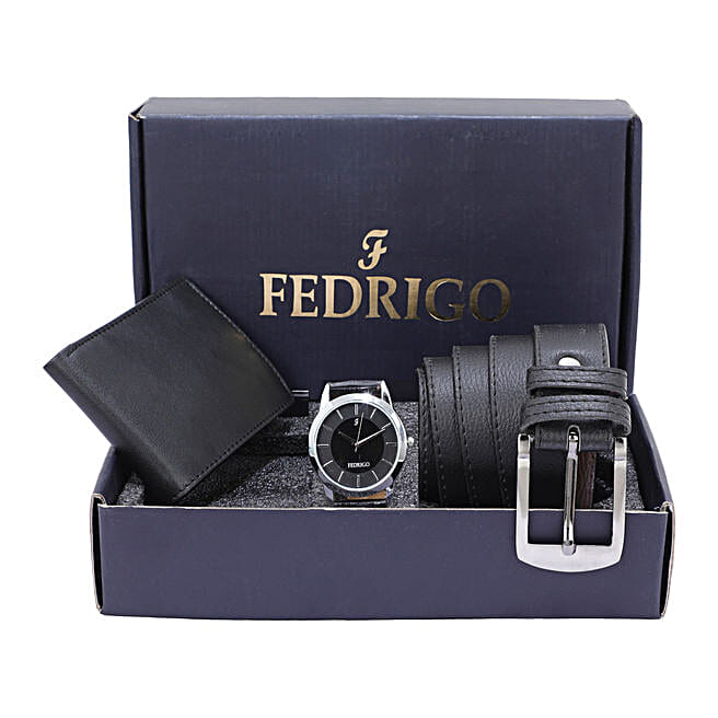 Wallet And Watch With Belt Black