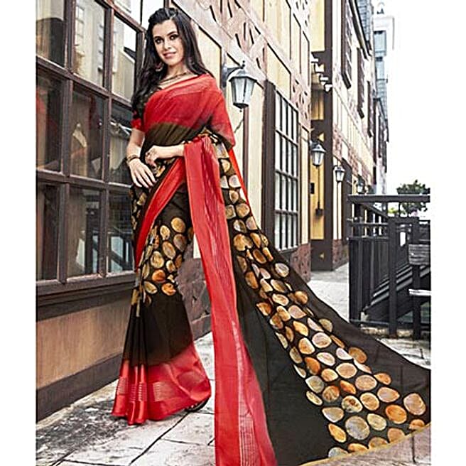 Faux Georgette Printed Brown Casual Saree