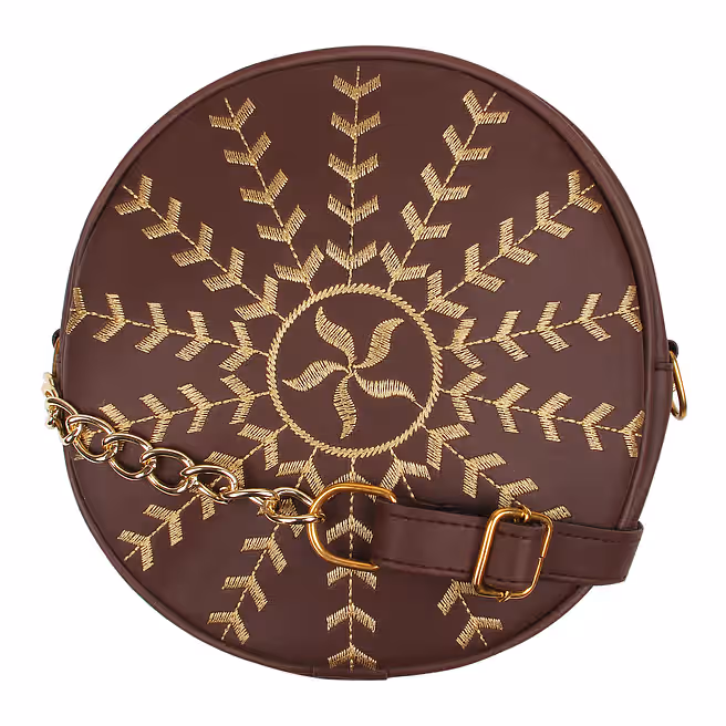 Faux Leather Round Embroidery Sling Bag-Coffee