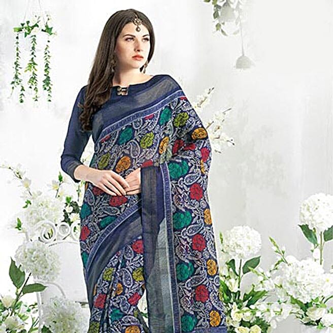 Festive Blue Blended Cotton Art Silk Saree