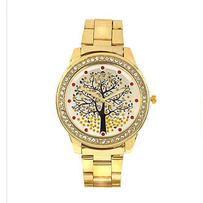 Fidato Golden Studded Watch For Women