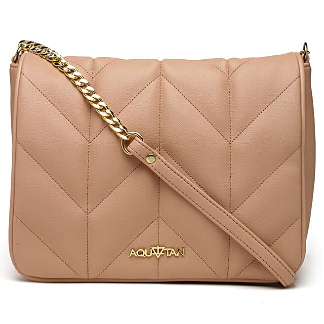 Flap Over Quilted Crossbody Sling Bag Hot Beige