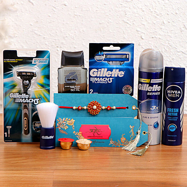 Floral Design Rakhi and Gillette Shaving Kit