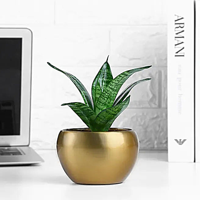 FNP Live Snake Plant in Gold Hammered Pot