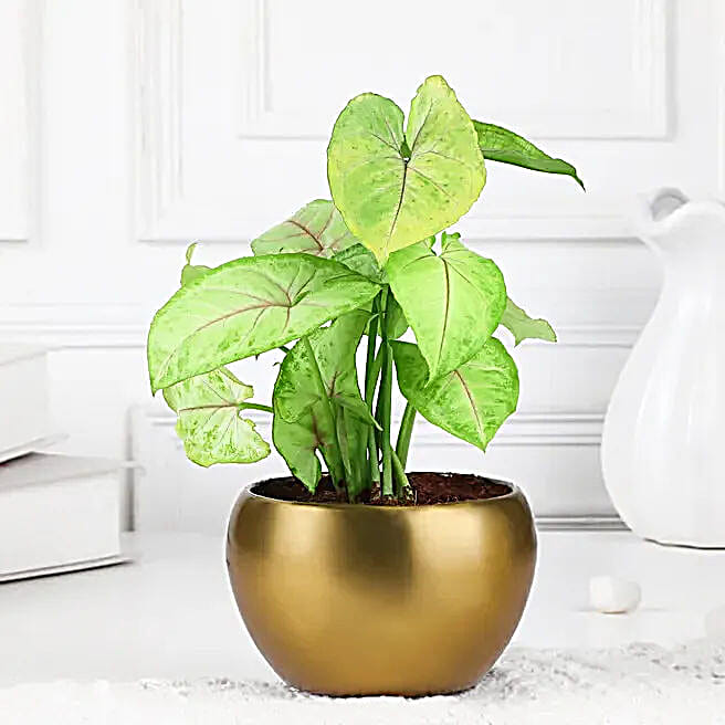 FNP Live Syngonium Plant in Gold Hammered Pot