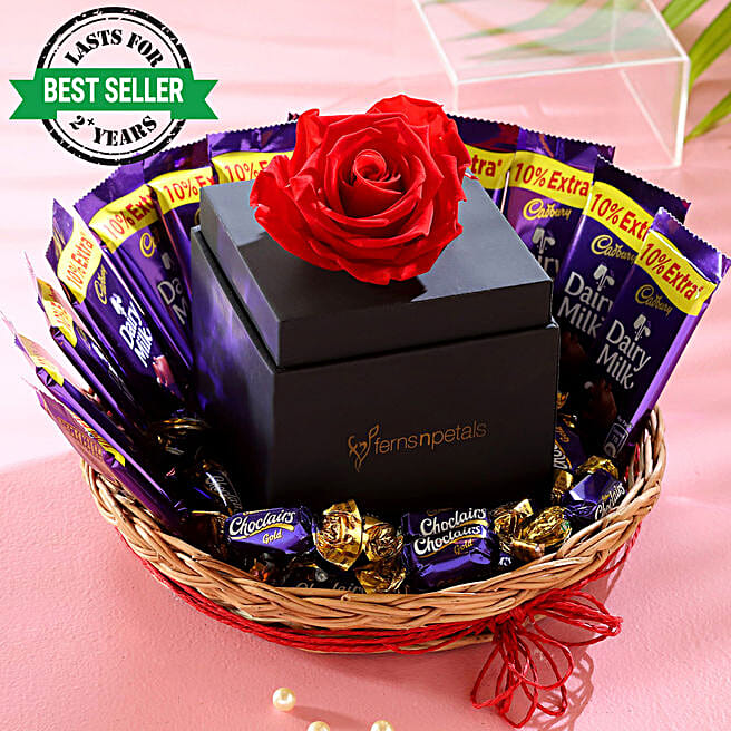Forever Red Rose Chocolatey Basket