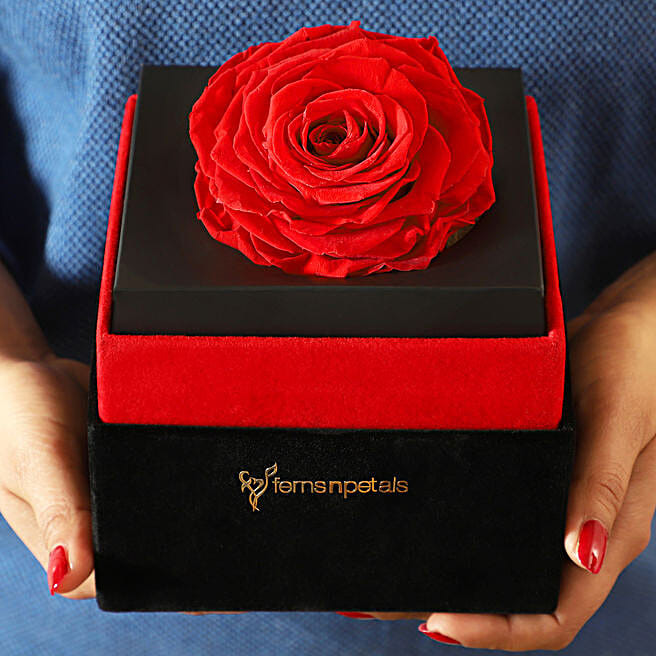Big Forever Red Rose in Black Velvet Box