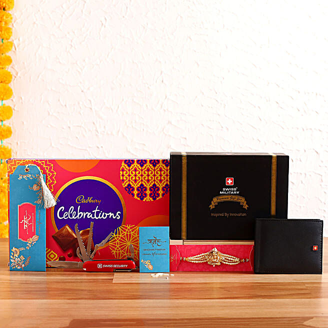 Ganesha Rakhi & Swiss Military Wallet Hamper