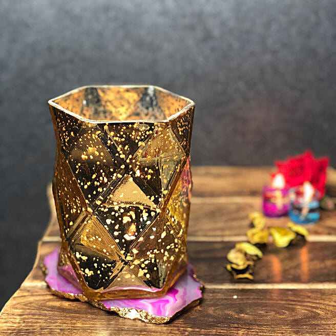 Golden Diamond Cut T Light Votive With Mercury Coating