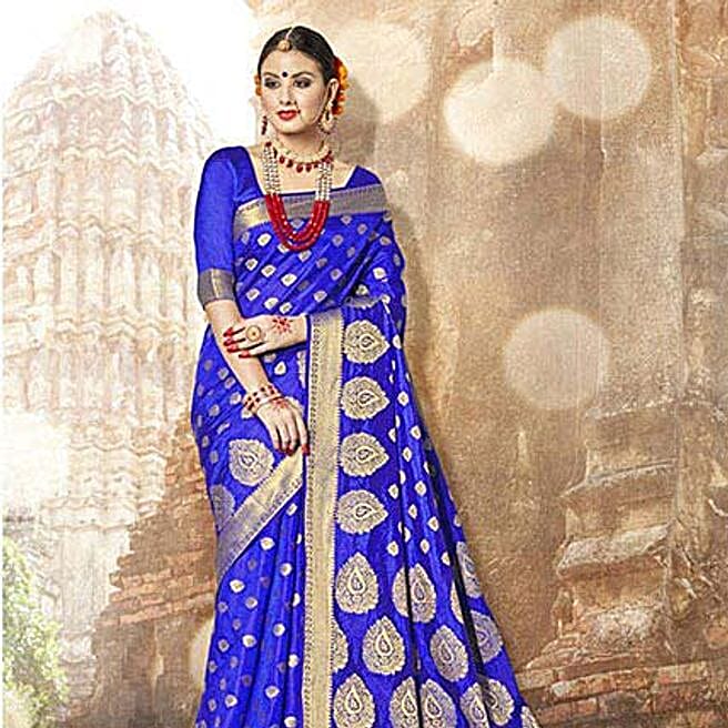 Gorgeous Blue Banarasi Silk Saree