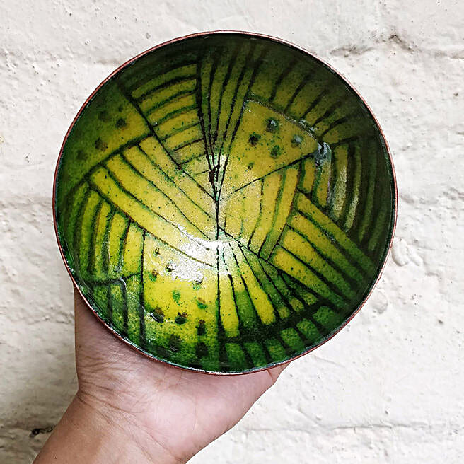 Green Abstract Enamel Copper Bowl