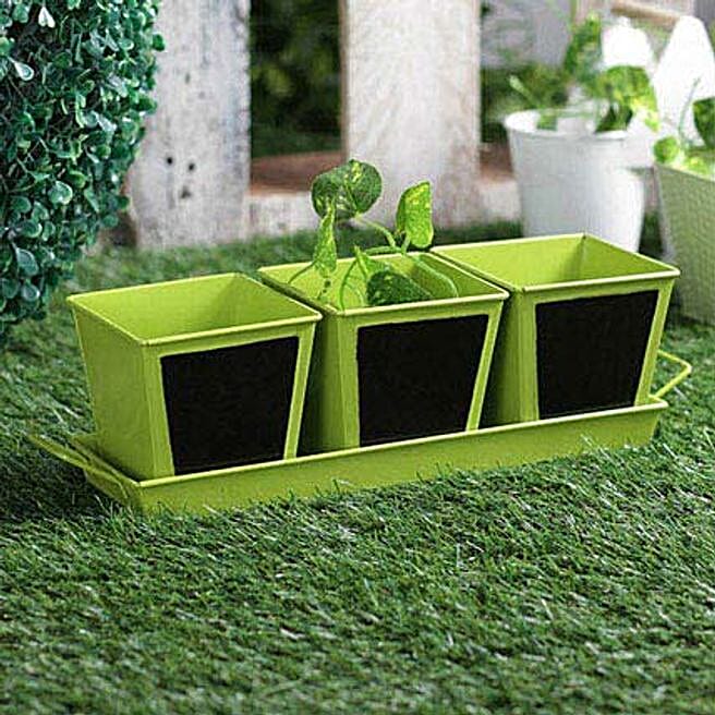 Green Chalk Board Herb Planter Trio