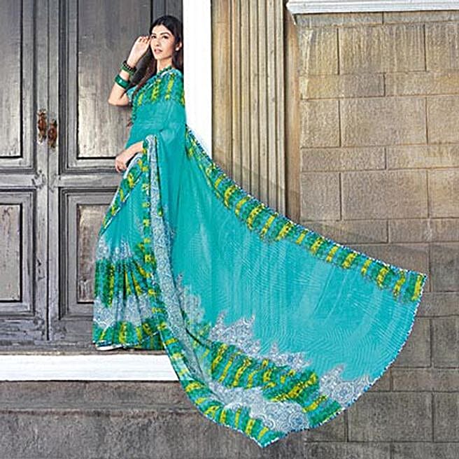 Green Chiffon Traditional Printed Saree