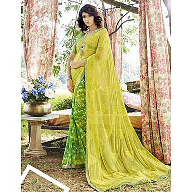 Green Faux Georgette Embroidered Casual Wear Sarees