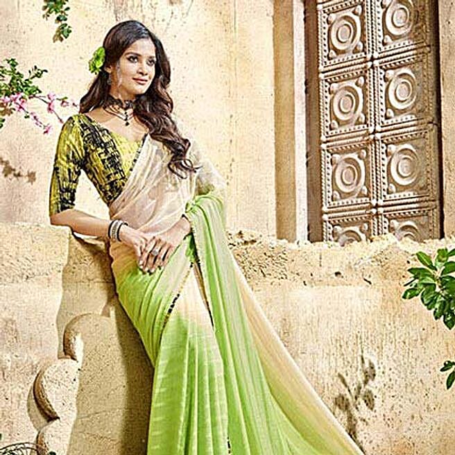 Green Georgette N Satin Printed Saree