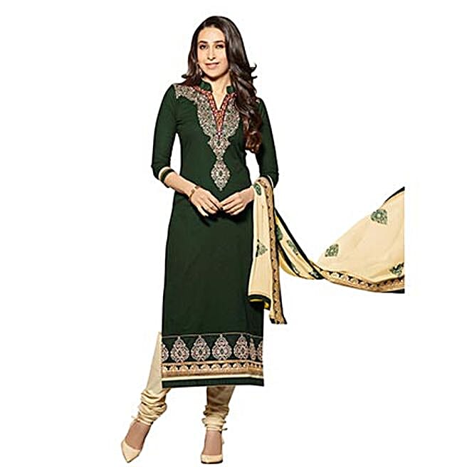 Green Pure Cotton Embroidered Dress Material