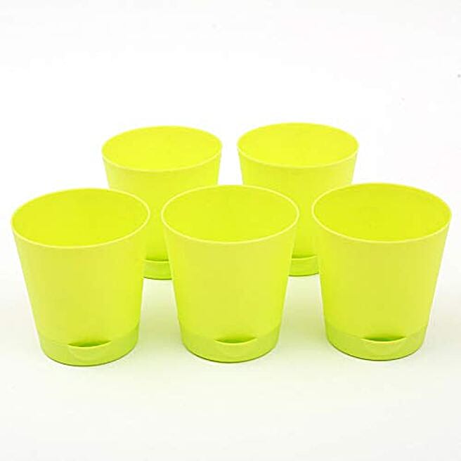 green set of 5 self watering plastic pot