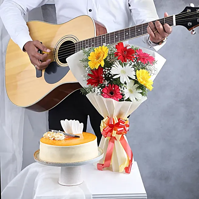 Guitarist With Flowers Gift Combo