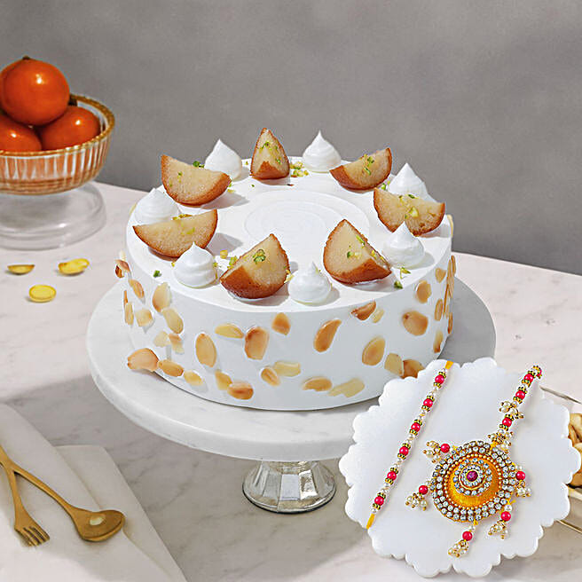 Gulab Jamun Cream Cake N BB Rakhi Set: 2 Kg