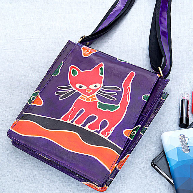 Hand Painted Cat Print Sling Bag