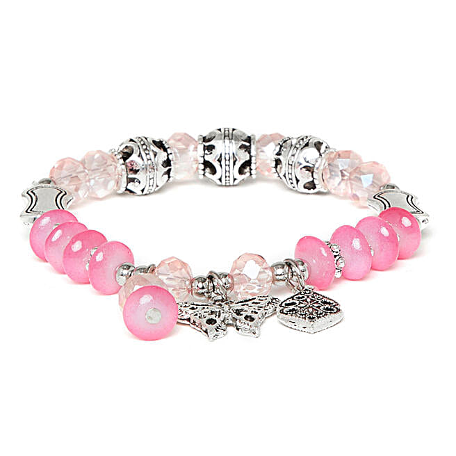 Handmade Pink & Silver Butterfly Bracelet