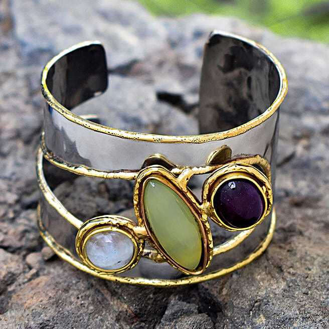 Handmade Studded Stones Silver Bracelet
