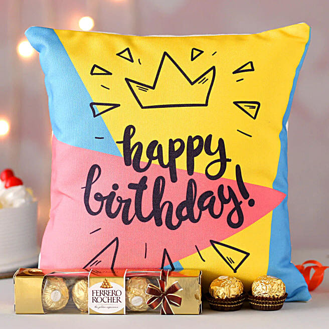 Happy Birthday Cushion & Ferrero Rocher Chocolates