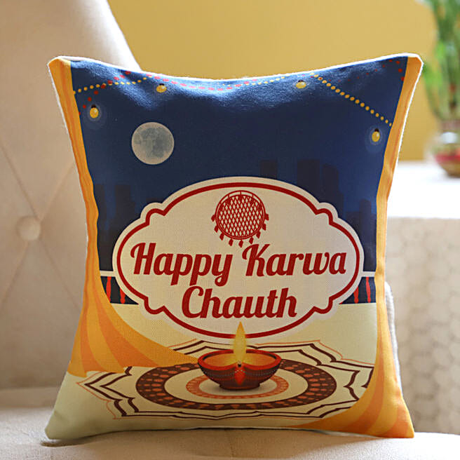 Happy Karwa Chauth Printed Cushion