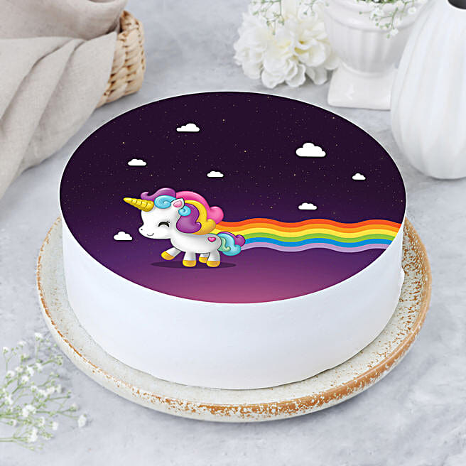 Happy Unicorn Pineapple Photo Cake- 2 Kg