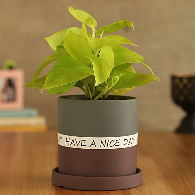 Have A Nice Day Money Plant in Purple Plate Pot