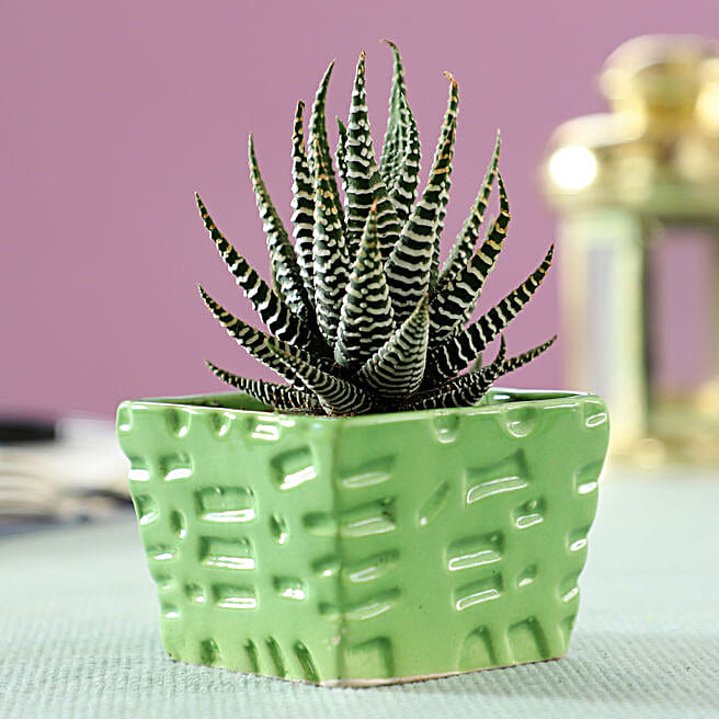 Haworthia Plant in Green Ceramic Pot