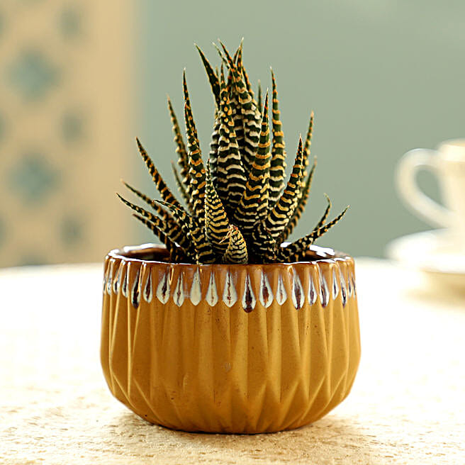 Haworthia Zebra Plant In Yellow Pot