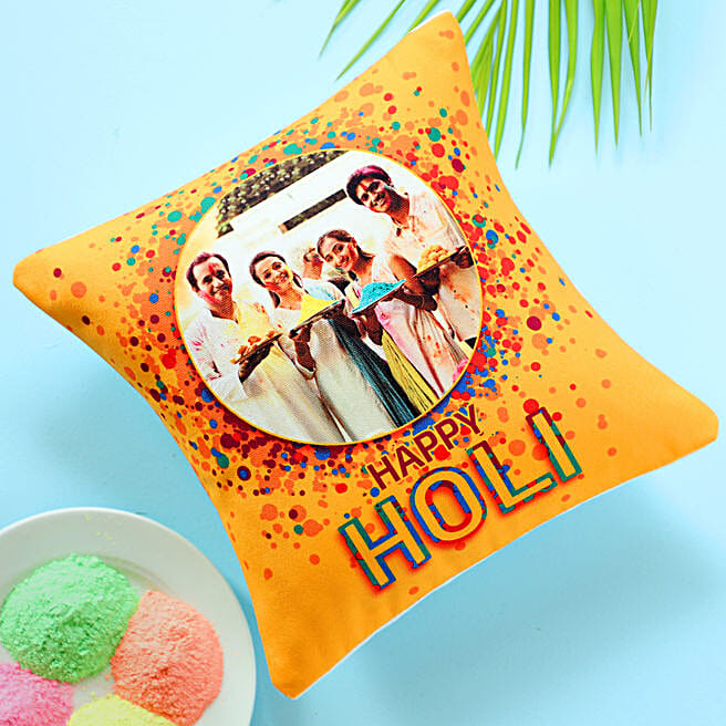 Holi Personalised Yellow Cushion