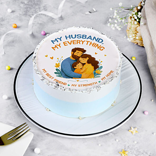Husband Appreciation Eggless Photo Cream Cake: 500 g