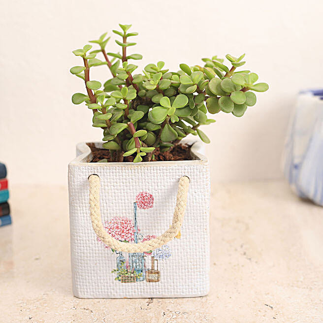 Jade Plant In Floral Hanging Pot