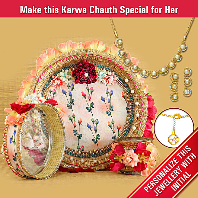Karwa Chauth Thali Set & Personalised Jewellery Set