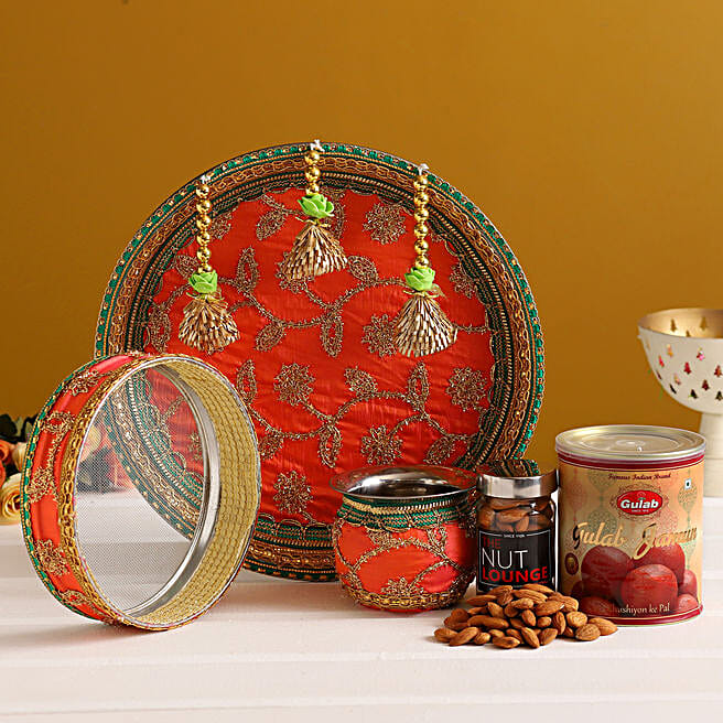 Karwa Chauth Thali Set With Almonds & Gulab Jamun