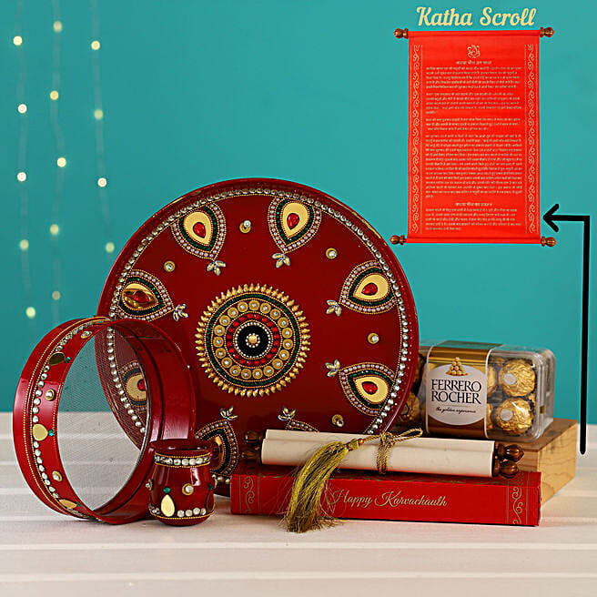 Karwa Chauth Thali Set With Ferrero Rocher & Katha Scroll